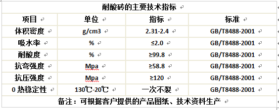 我公司耐酸磚是以石英、長石、粘土為主要原料,經(jīng)高溫氧化分解制成的耐腐蝕材料,產品背部加燕尾槽,施工時便于與耐酸泥牢固粘接,不易脫落。即可保證工程質量,又能延長工程使用壽命。